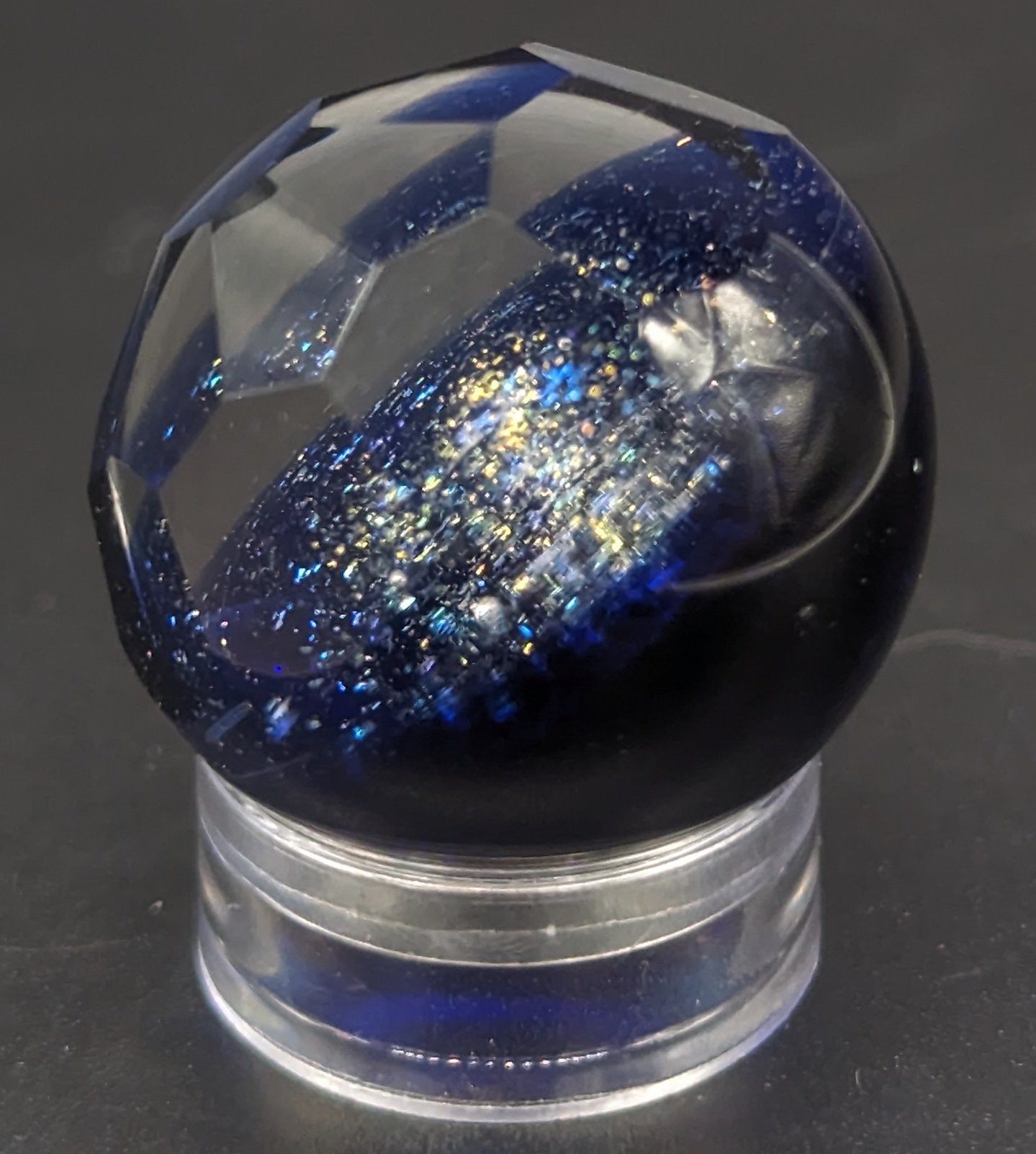 Blue/yellow CBS dichro swirl with 3 tiers of facets, perfect size for a slurper marble.