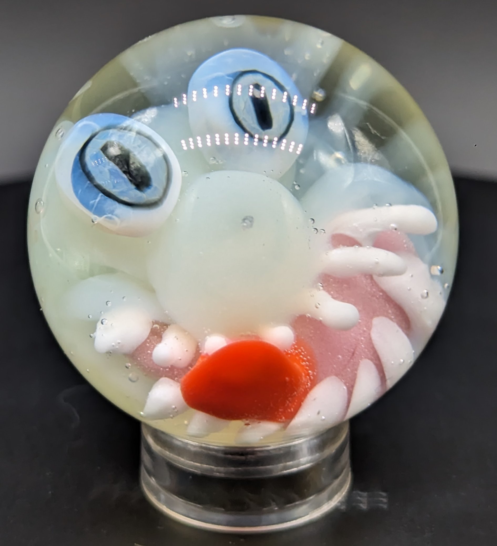 Full UV reactive monster face implosion marble with murrini eyes